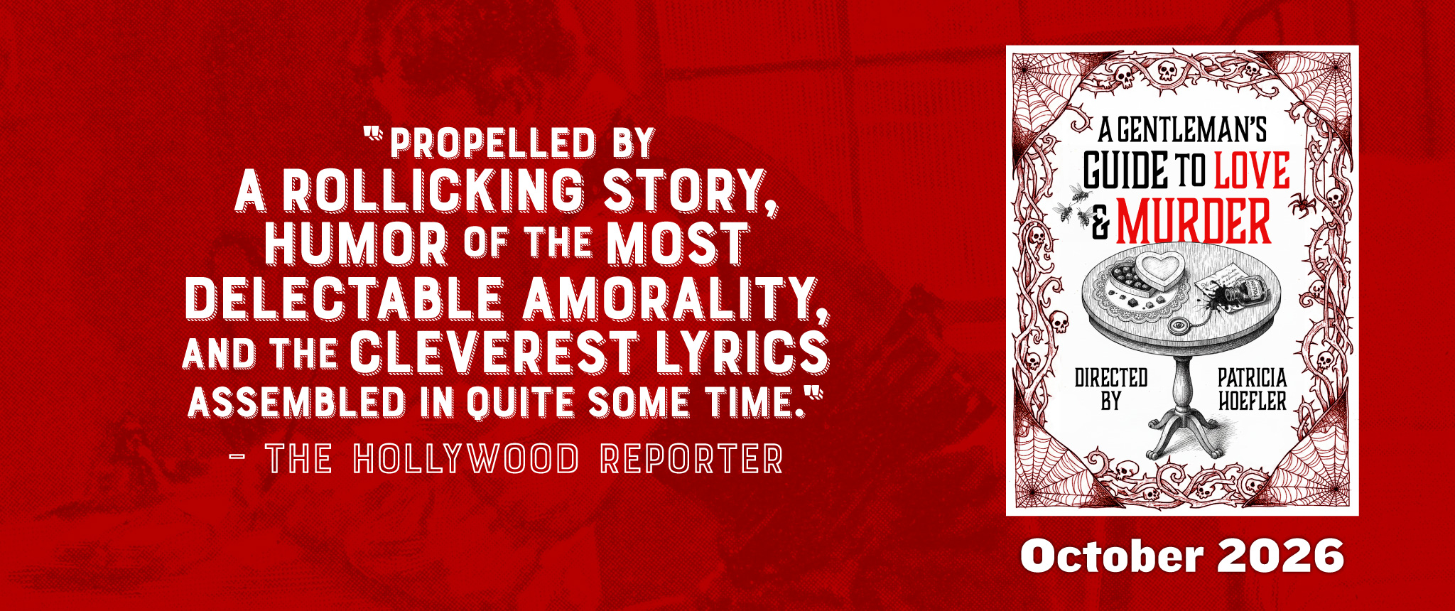 When the low-born Monty Navarro finds out that he’s eighth in line for an earldom in the lofty D’Ysquith family, he develops a devious plan to expedite his path to high society… at the great expense of eight of his relatives (all played by the one actor!). Armed with his charm, he attempts to avoid suspicion while caught between feelings for two beautiful women. Based on the Novel by Roy Horniman and the most Tony-nominated show of the 2014 Broadway Season (including a win for Best Musical), this murderous, comedic romp with unforgettable music will leave you begging for more!