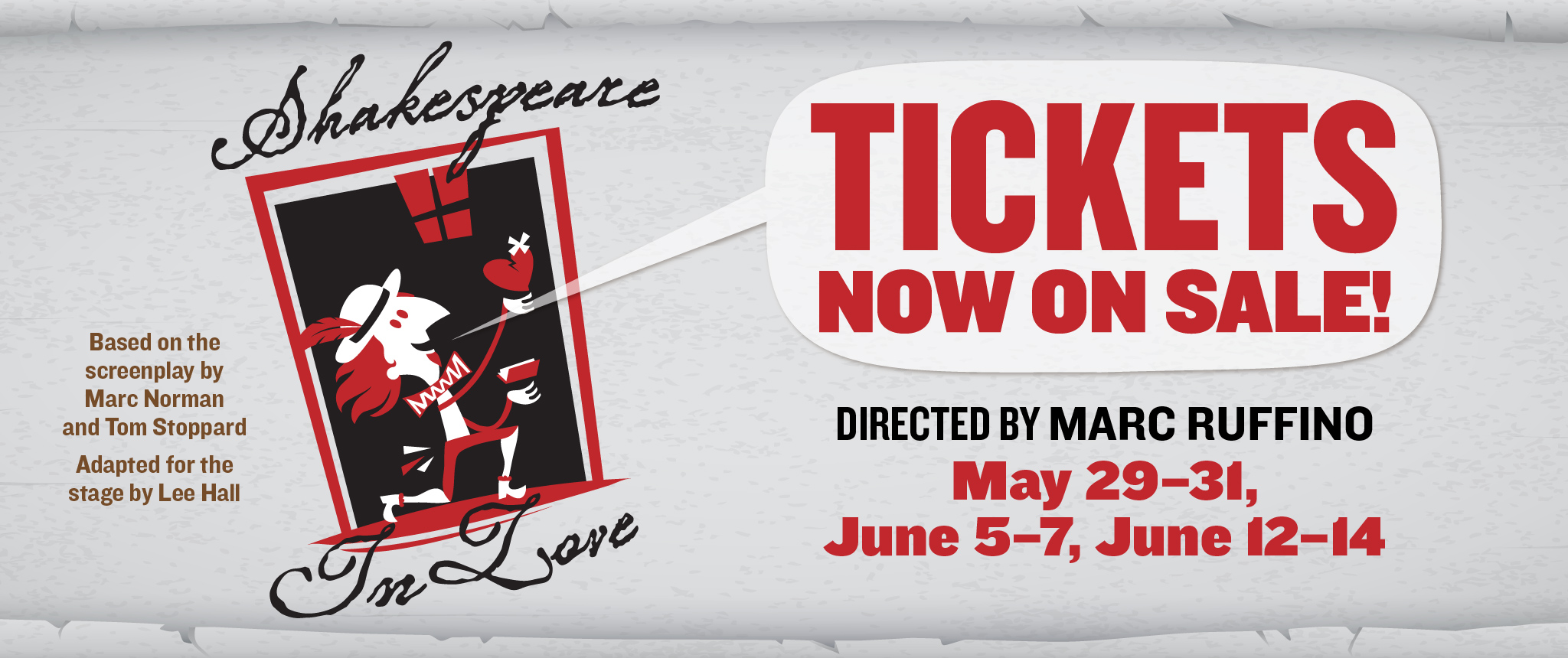 Adapted from the Academy Award-winning film. This hilarious and enchanting play takes imaginative liberties in exploring Shakespeare’s creative process. Young Will Shakespeare has writer’s block. With a looming deadline and no inspiration in sight, everything changes when he meets his muse: the brilliant, bold and beautiful Viola. This crafty young woman is Will’s greatest admirer and will stop at nothing—including breaking the law—to appear in his next play. Amid a whirlwind of mistaken identity, backstage antics and theatrical scheming, their forbidden romance blossoms, inspiring Shakespeare to write his greatest romantic masterpiece.